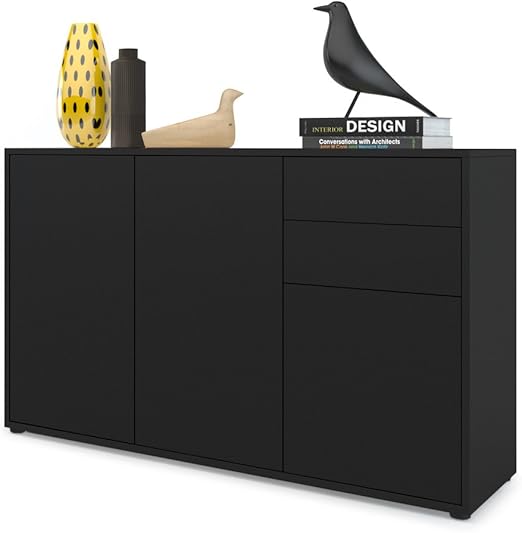 Vladon Kommode Sideboard Ben V3 Korpus In Schwarz Matt Fronten In